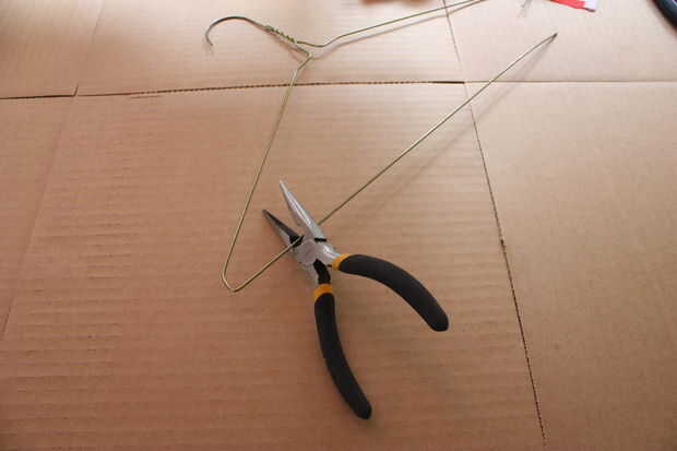 -Justo por encima de la curva de 90 grados que grabado previamente, fijar la percha y envuelva con cinta aislante, otra vez.
