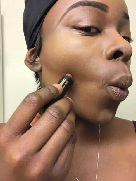 Contorno uso un corrector 1 sombra más oscuro que la tez de la piel e ir a la derecha debajo de tus mejillas resaltadas y a ambos lados de la nariz para hacer que la nariz parezca ligeramente estrecho.