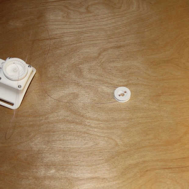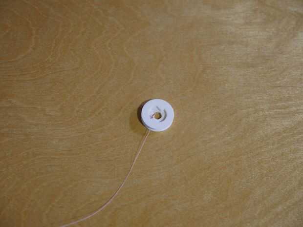 - Enrosque el filamento a través del otro agujero horizontal en el carrete de trinquete y agregado un cordón para actuar como un tapón, como antes.