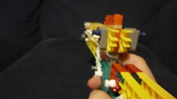 esta es un arma de KVG que usted puede hacer si no tienes muchas piezasPaso 1: Reunir las piezas para hacer el arma que vas a necesitarmango2 conectores verdes2 barras verdesbarra azul 14 conectores de púrpuraCañón3 barras rojas2 barras amarillas2 ba