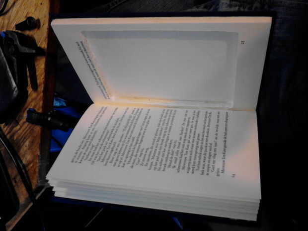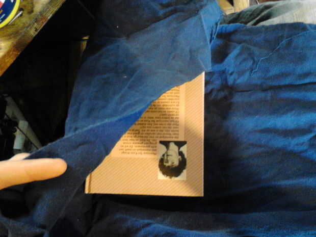 Tomar la tela y su libro y cubrir el lomo del libro con pegamento (Asegúrese de obtener pegamento en los pliegues del lado). Coloque el libro en el centro y presiona a la tela en el doblez en el lado de la columna vertebral. Toma tus tijeras y hacer dos pequeños cortes en la espina dorsal del libro y corte el pedazo pequeño de tela por la mitad (fotos 8, 9 y 10). Cubrir la parte delantera del libro con pegamento y colocar a la tela sobre la tapa. Ahora poner pegamento en el interior los bordes del libro para que pueda plegar la tela y pegamento abajo, podría (como yo) quiere cortar un pedazo pequeño en la esquina por lo que no crear una protuberancia. Tomar la primera y última página y pegar estos sobre la tela en la espalda y la cubierta frontal para ocultar los bordes de la tela. La siguiente parte puede ser un pequeño incómodo, poner pegamento en los bordes de la columna vertebral y utilizar su cuchillo para empujar las aletas pequeña tela en la columna vertebral (cuadros 15 y 16).