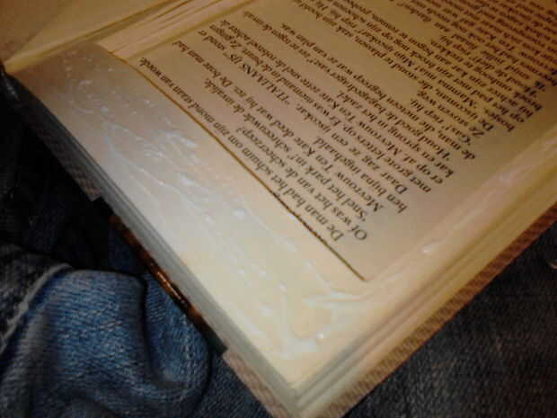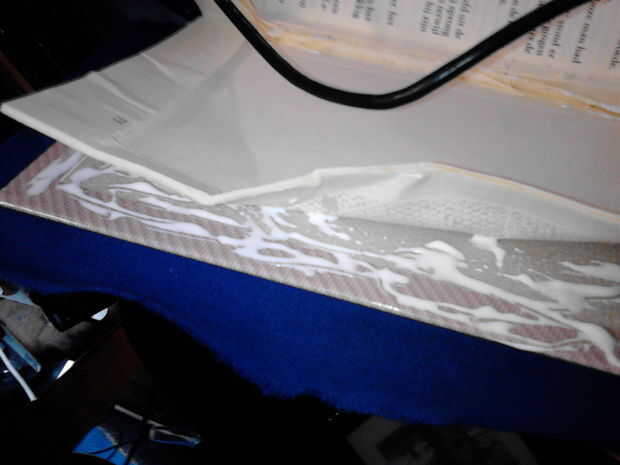 Ahora haz tu cola y empezar a pegar a cada una de las páginas, creo que uno por uno es el mejor enfoque porque esto le permite mantener el pegamento en jaque. Sólo seguir adelante hasta que todas las páginas de corte se pegan abajo, limpie el exceso de cola con algo como una toalla de papel.