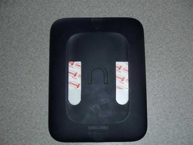 Mientras que esto funciona muy bien, tiene un inconveniente, al menos para el Nook. En el rincón, el botón está en la parte posterior de la parte superior del dispositivo, lo que tienes que quitarlo de la tapa Pulse el botón, o doblar la parte trasera de la tapa abajo cuales eventualmente romperlo. Tuve que buscar otra solución...