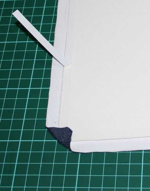 Una vez que las tablas se pegan, cortar el las esquinas muy de la tela.