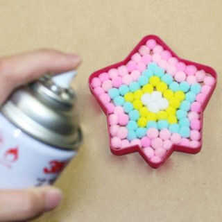 スプレーのりの場合は3分、ボンドの場合は乾くまで待ってそっと型を抜きます。