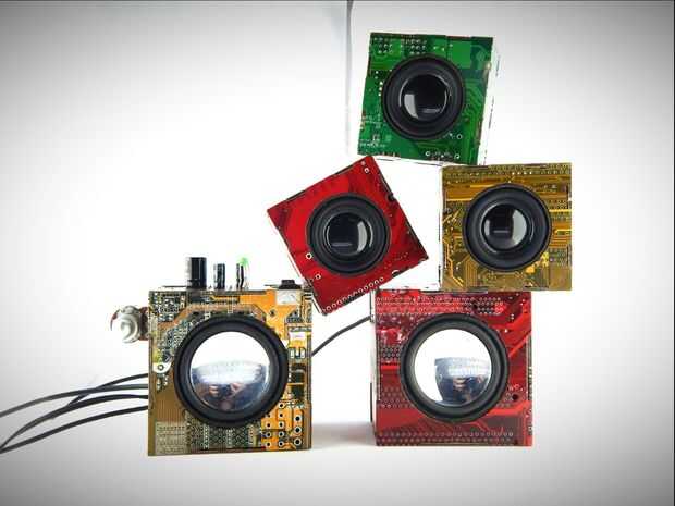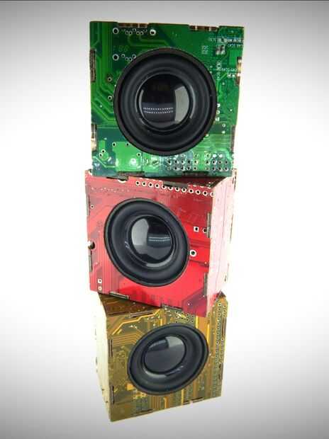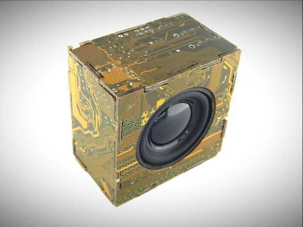 Uma caixa de som praticamente vinda do lixo eletrônico.