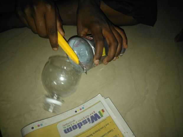 Tomar una botella y cortar el centro del cuerpo de la botella.
