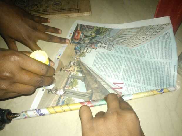 necesitarás viejas plumas, papel, cellotape, un pedazo de cartón de colorPaso 1:Recoger plumas viejas, preferentemente los mismos y eliminar sus recargas.Tome un papel de color, estoy usando azul, longitud 12 cm y ancho 3 cm.El papel de rodillo y pon