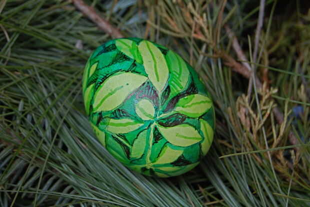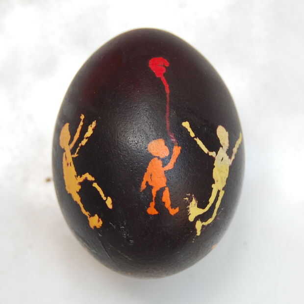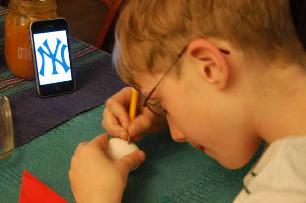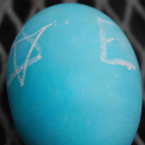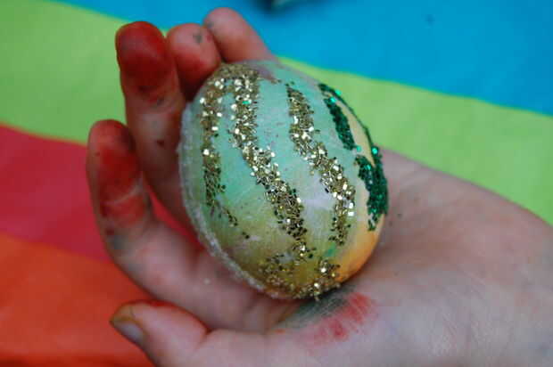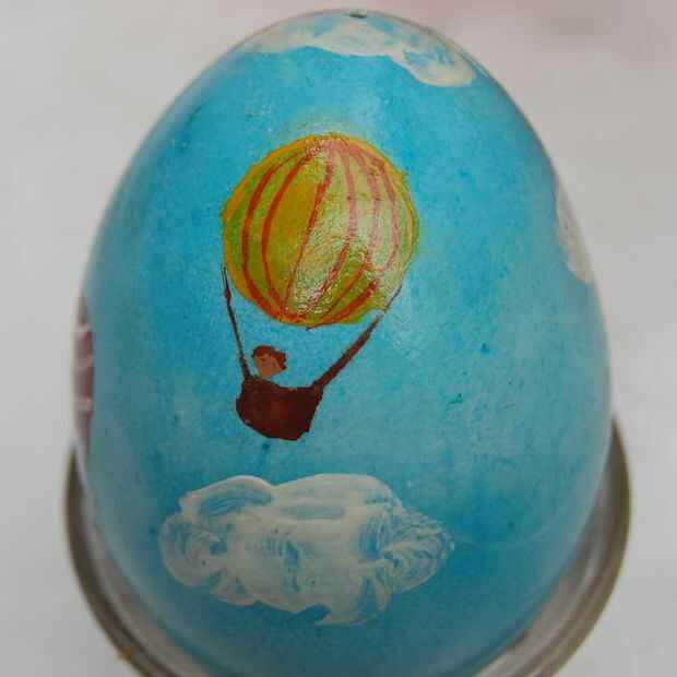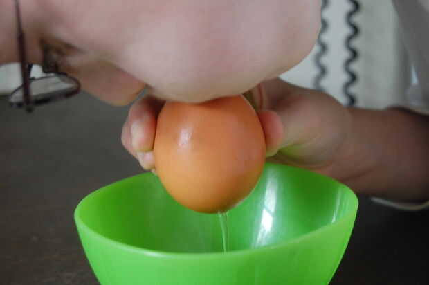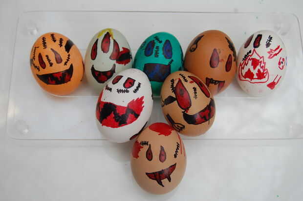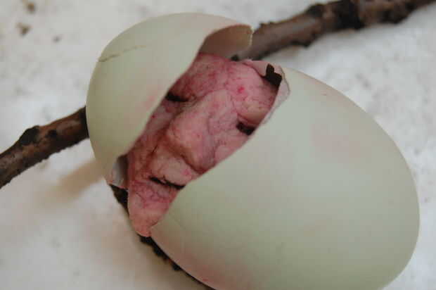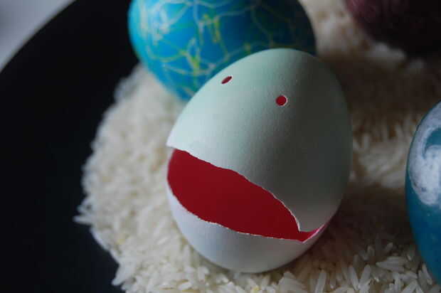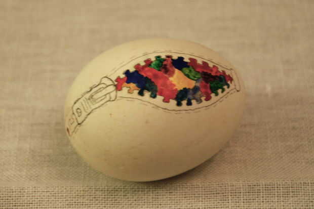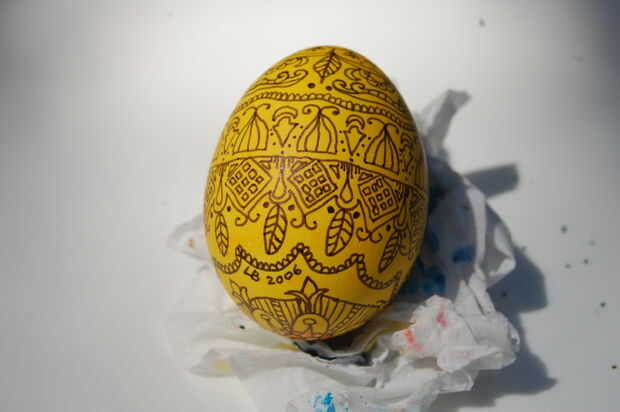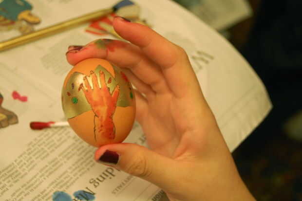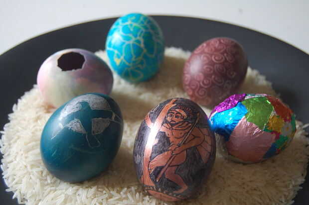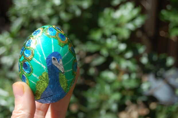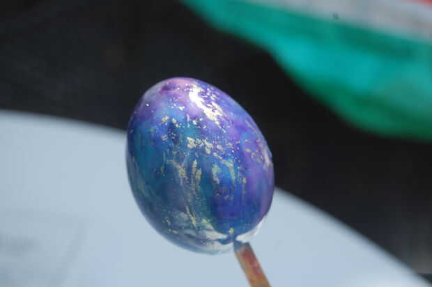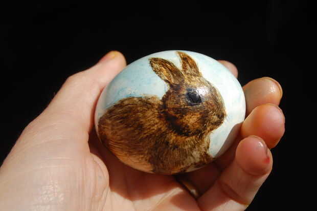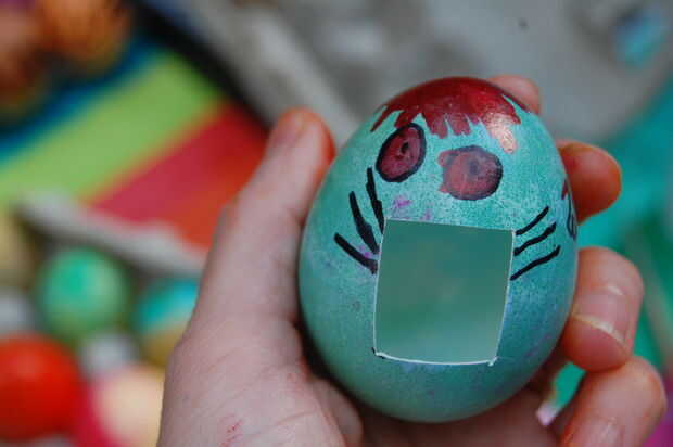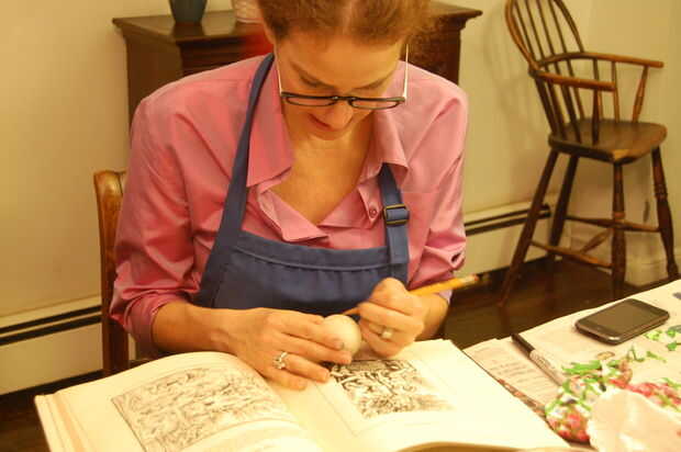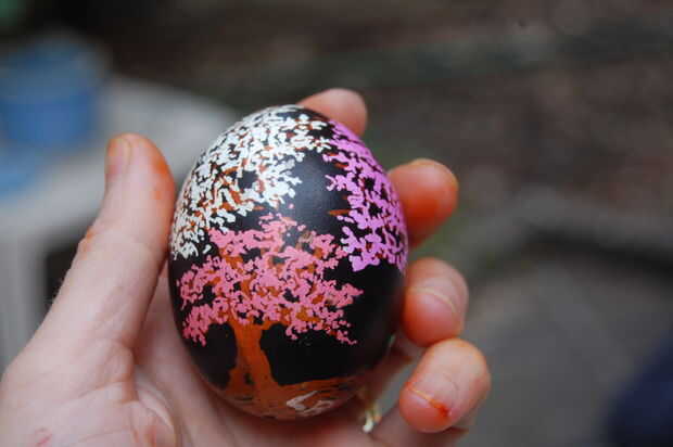 Al final de la presentación hay una fotos de soplar el huevo: se puede hacer un agujero el tamaño de un pinchazo de alfiler y un agujero ligeramente más grande en el fondo, empujando a través de la cáscara con un alfiler y luego saltar para agrandar la abertura. Soplar por el pinchazo de alfiler, luego si la yema le da un tiempo duro, jab el perno encima de la parte inferior para romper para arriba. Prepararse para la Pascua haciendo un montón de libras tortas (porque requieren toneladas de huevos que no necesitan ser separados) y soplando huevos hasta sus mandíbulas ache y la cabeza sentir luz. Definitivamente vale la pena el dolor.