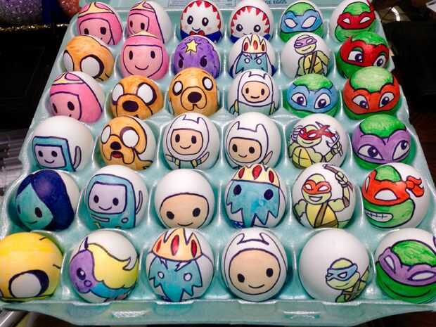 Después de hacer puede utilizar un lápiz de color para esbozar la imagen que desee. Generalmente hago personajes populares que se ven muy bien en los huevos.