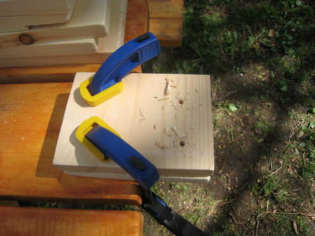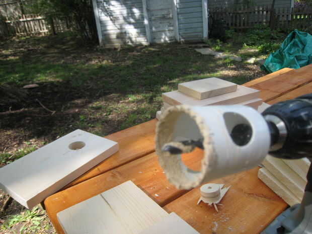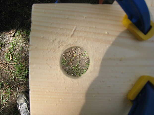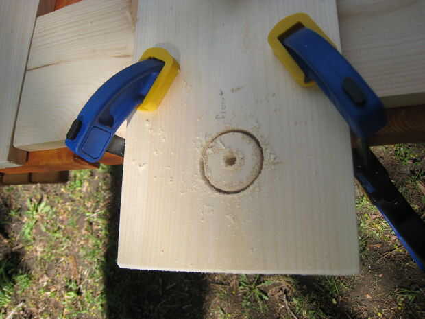 1.5" broca agujero tiene un poco normal en el centro, para ayudar a centrar y guiar la broca. Una vez que la broca centradora penetra en la parte inferior de la pieza que son perforación, dale la vuelta y terminar del otro lado para minimizar el astillado de la madera.