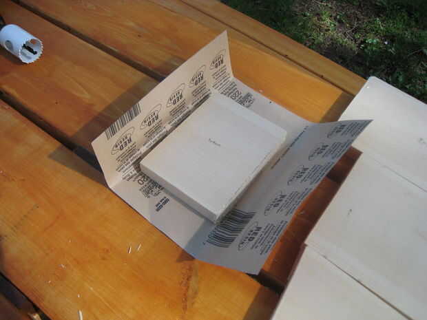Luego marque y corte la entrada de la pieza frontal. Usé un 1.5" redondo agujero (algunos planes de usan un óvalo).