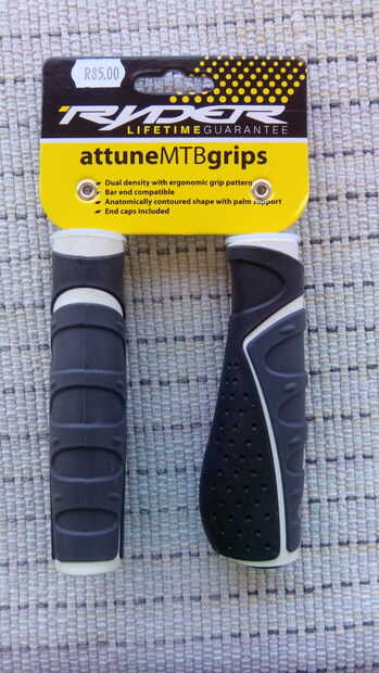 Montaña en bicicleta agarre. Puede utilizar cualquier control de la bicicleta, pero los puños de bicicleta de montaña que encontré en mi tienda de bicicletas local se ve bien y encaja perfectamente en tu mano para buen agarre.