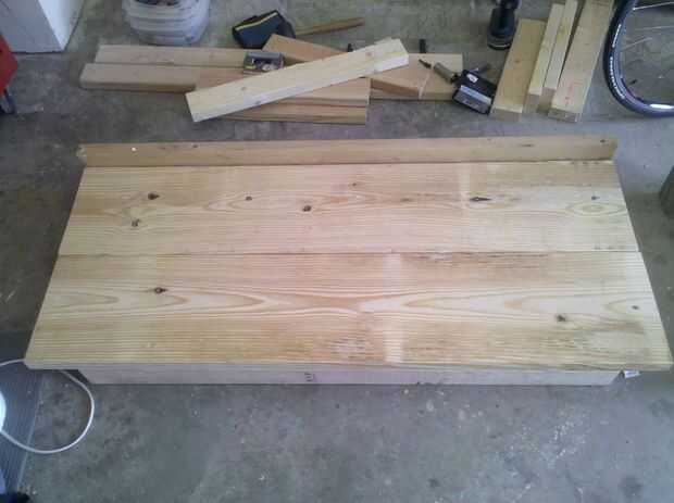Tuve una plataforma nueva que no era necesario así que decidí hacer un banco de madera fuera de él. Recientemente hice el patio traseroasí que decidí que necesitábamos un nuevo elemento de sesión.-Después de romper la tarima en sus partes, utilicé mi