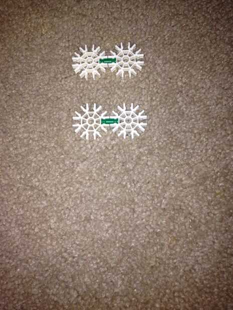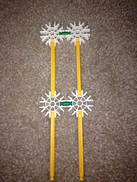 4. Tome las 4 barras blancas y lugarles Conecte a los conectores blancos para que se peguen hacia fuera horizontal