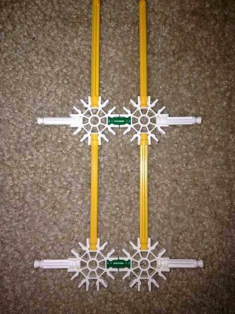 2. tomar los 4 conectores blanco y las 2 barras verdes y adjuntarlos como tal