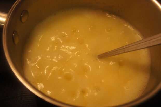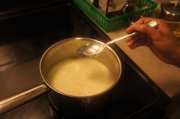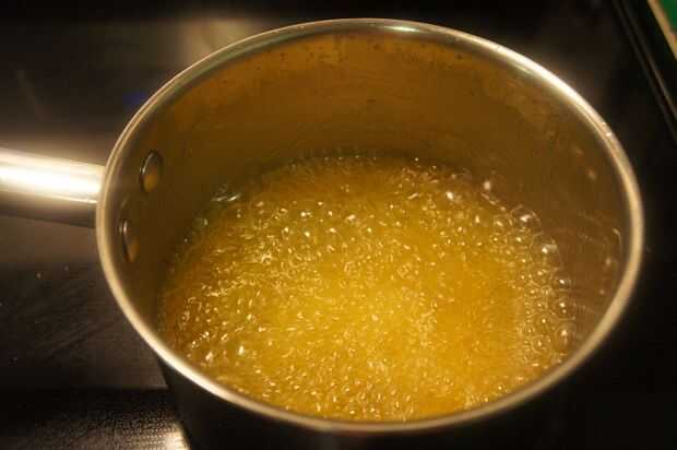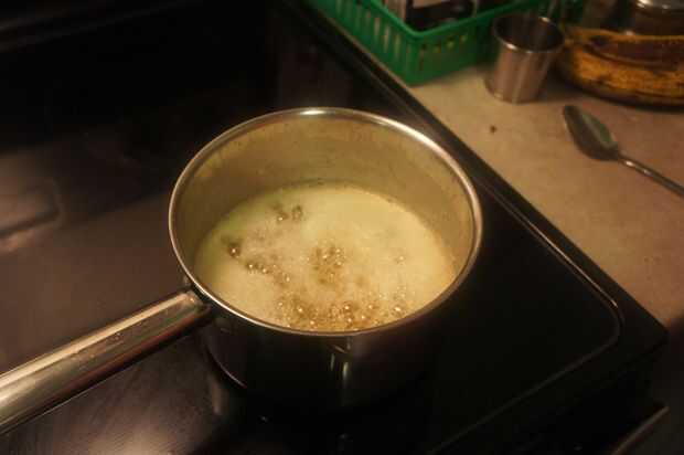 3) inicialmente habrá una capa lechosa formada en la parte superior de la mantequilla derretida. (es cuando la mantequilla derretida que empieza a hervir)