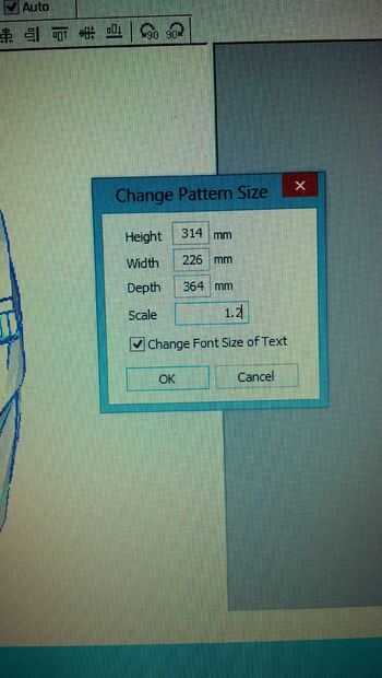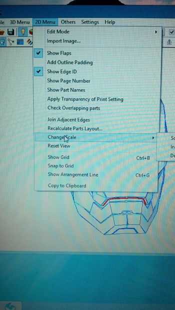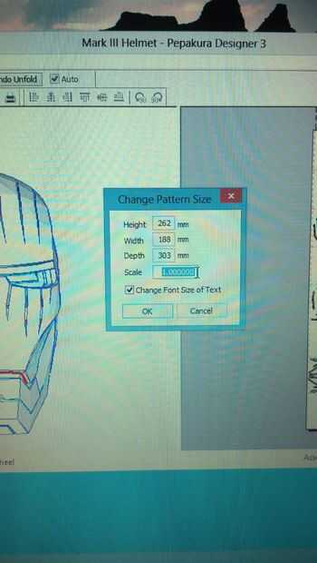 3. ir al menú de "2D" en la barra superior en pepakura y haga clic en cambio de escala en la parte inferior. Y entrar a la oreja como el ancho y la barbilla a la cabeza a la altura.