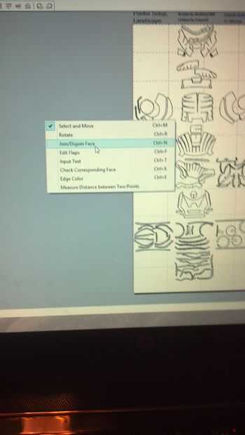 3. algunas partes son en grandes para caber en la Plaza y tienes que cortarlas. Para ello, haga click derecho en el lado derecho de la pantalla y haga clic en unir/separar la cara. Ahora acercarse a la pieza que no encaja y te recomiendo solo cortarlo por la mitad. Verá una línea verde para ayudar a guiarlo.
