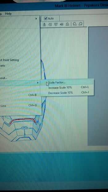Ahora cuando se imprime el casco probablemente no encaja en la cabeza así que vamos a cambiar eso. Yo hice uno con hacia fuera cambiando el tamaño y no encajaba. El siguiente que hice es un factor de escala de 1.2 y parece buena.