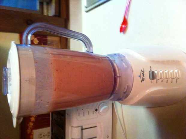 Paso 1) pone 2 plátanos en rodajas, 1 1/2 tazas fresas, 2 tazas de Yogurt y el Yo-J en la licuadora. Mezcla hasta que quede suave. Ponga a un lado.