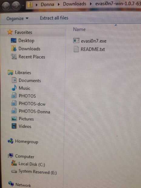Abrir "Evasi0n7.exe". Haga clic en "Extraer".
