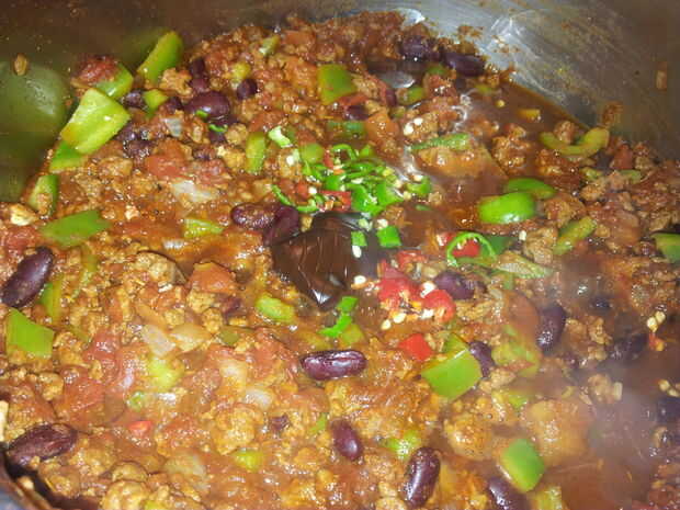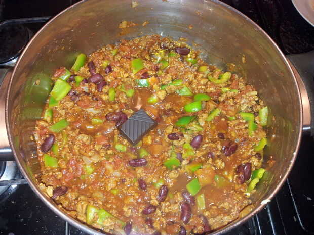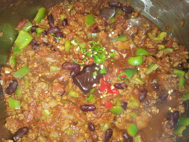 Por último, añadir las alubias, los garbanzos (o ay clase de frijoles le gustaría), marmite y chiles y aproximadamente una taza de agua (si se agrega demasiado usted sólo puede hervir apagado y si agrega demasiado poco puede siempre agregar más). Que a este cocinero durante aproximadamente media hora, pero si estás en un apuro se puede cocinar mucho más rápido, la carne ya se debe cocinar en este punto por lo que sólo se puede calentar para arriba. Sin embargo, personalmente, prefiero dejar la cacerola en fuego lento por entre 30 minutos y 45 minutos. Luego le dan un sabor y agregar condimento a tu gusto.