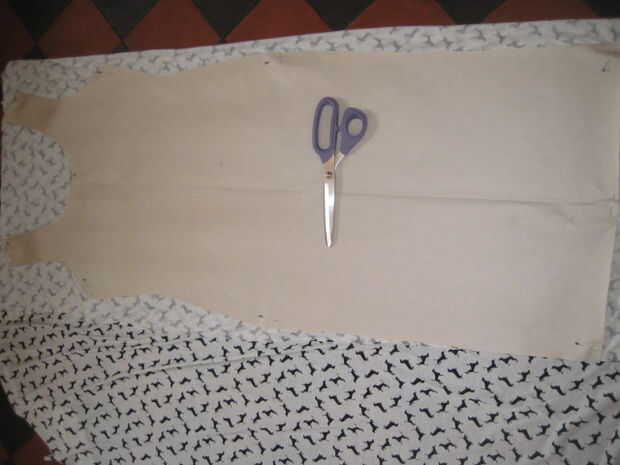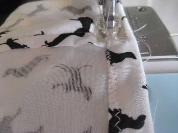 Doblar la tela por la mitad, derecho juntos asegurándose de que la tela es recta. Patrón de lugar en él.  Prender y cortar. Quitar el patrón de papel y poner alfileres en el. Lados de la máquina y los hombros con un zig zag de la puntada.  Rollo cuello agujeros línea y brazo y zig puntada zig. Girar el dobladillo de abajo hacia arriba 1cm y a la por zigzag de 1cm.