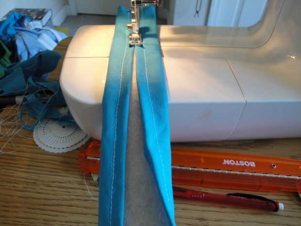 7. coser los dos bordes de la tela juntos, por lo que se encuentran justo en el medio.