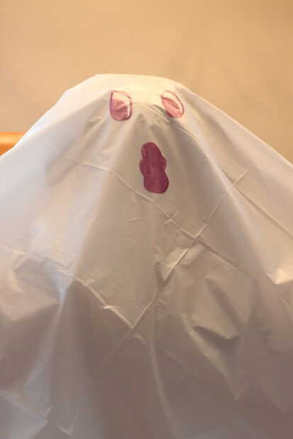 Poner la cubierta en lugar de plástico, y luego completar el look añadiendo cara de tu ghosty! Por error, cogí un marcador púrpura en lugar del negro, pero usted consigue la idea! Usted puede ya sea a mano alzada como esta, o utilizar otros materiales para crear la cara – fieltro, papel, espuma de artesanía, etc..