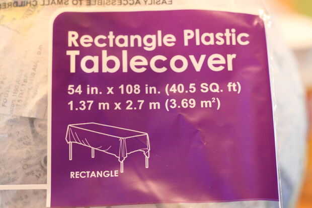 Ahora, conseguir la mesa de $1 que cubre... Saque de la caja y cortarla por la mitad ancho sabio... desea dos más cortas, rechonchas mitades y no dos mitades largo. Toma una mitad, más o menos encontrar el centro de y colóquelo sobre la parte superior de la piñata; Marque los puntos donde sus suspensiones son, entonces cuidadosamente corte ranuras en el plástico. No tiene que ser perfectamente incluso...