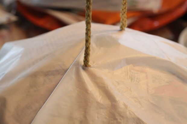.. .repeat con la 2 º mitad... ahora tu pinata está cubierto. Como dije, es una manera abajo y sucio, rápida para hacerlo. Si quieres ir un poco más, fácilmente puede cubrirlo en papel crepé o papel de seda. Reconozco que se puede ver el papel un poco a través de la doble capa de plástico, por lo que puede grafitear el pinata blanco antes de terminar, que creo que voy a hacer.