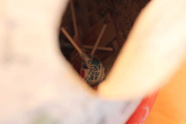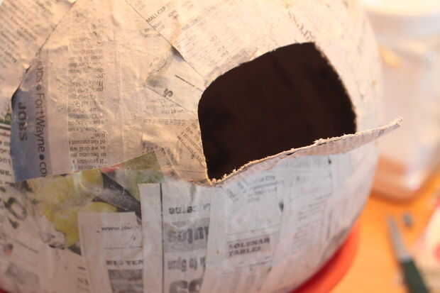 Derecha... moviéndose a lo largo! Levantar las capas de plástico y encontrar un lugar para cortar un agujero. Lo bueno de este montaje, no tienes que preocuparte mucho acerca de lo que parece ya que está cubierto con el plástico! Tenga cuidado al cortar! Las paredes pueden ser un poco más delgadas, así que suave al cortar. Acaba de hacer una media luna forma... el papel es un poco frágil, por lo que cuando te retiras volver a abrir, puede rajar un poco. Lo arreglaremos esto más adelante.