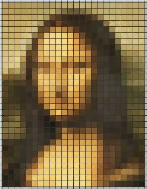 Voy a publicar varios ejemplos a lo largo de este Instructable, pero el que va a utilizar para mostrar cómo editar y convertir todo será la Mona Lisa. También se utiliza el tamaño mencionado en el paso anterior - 6' x 8', que a 24 x 32 post-Its.