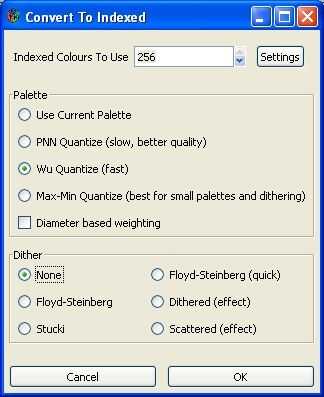 2) haga clic en imagen -> convertir a indexada (mostrado abajo).