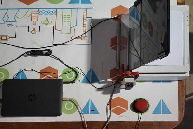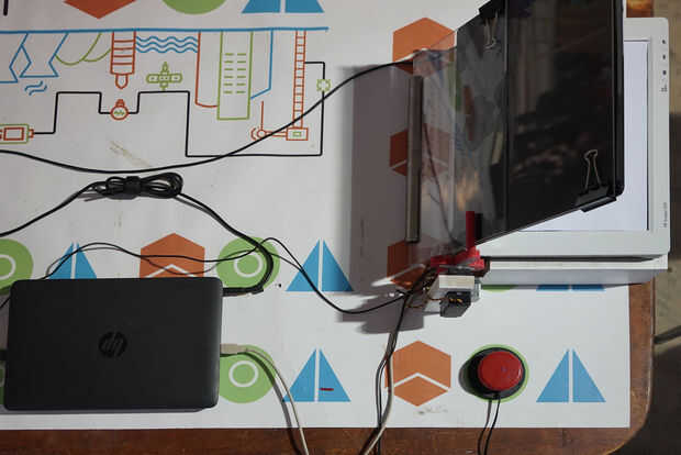Hemos querido que sea capaz de presionar un pedal que abre la tapa del escáner y luego presione otra vez para cerrar la tapa del escáner y funcionar automáticamente la exploración. En este centro trabajan generalmente en pares por lo que su pareja pondría las páginas cada vez.