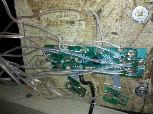 Como se puede ver una vez que la conexión se sueldan en, caliente pistola de pegamento en lugar entonces con grapas el cable hacia abajo para que no se mueva. Esto permite liado con los cables y evita que las juntas soldadas de interrupción.