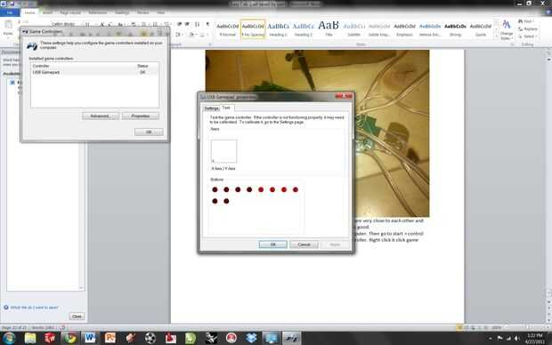 Para asegurarse de que la conexión funciona adelante y enchufe en la computadora. A continuación, vaya a Inicio > panel de control > dispositivos o controladores de juego > Pulse controlador de usb gamepad. Haga clic botón derecho haga clic en configuración de controlador de juegos > haga clic en propiedades. La pantalla debería ser como la imagen capturada: