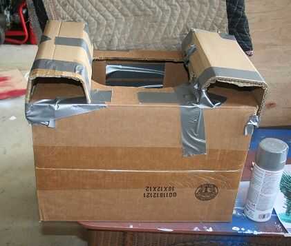Empecé haciendo una base para el trono de una caja de cartón. Este es un traje de ilusión, por lo tanto el usuario es no sentarse en el trono, pero pie en un orificio en el asiento.
