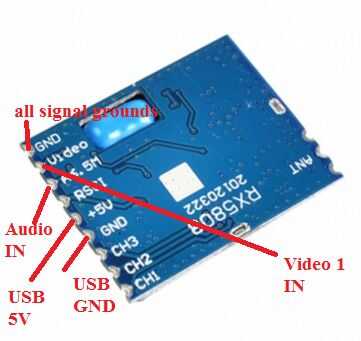 4. • planta de energía de la soldadura (desde USB) al pin gnd cerca de pin de 5v de la RX5808