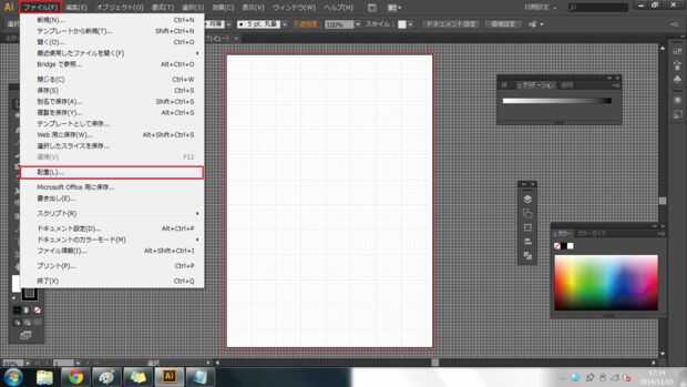 Adobe Illustratorを起動して "ファイル" の中から "配置" をクリックし、