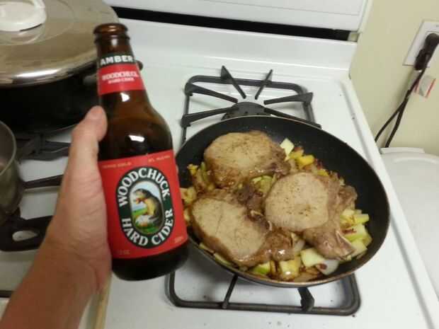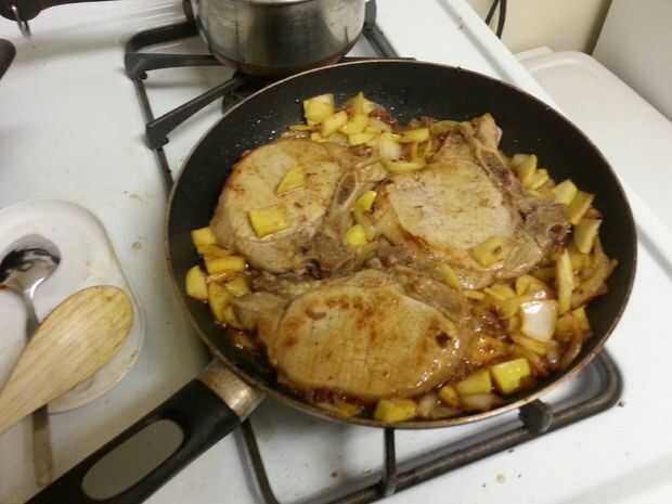 Otra vez, saque las chuletas y mantener calientes (dejarlos descansar un poco!) .. .pero deja la manzana cebolla mezcla en la sartén.