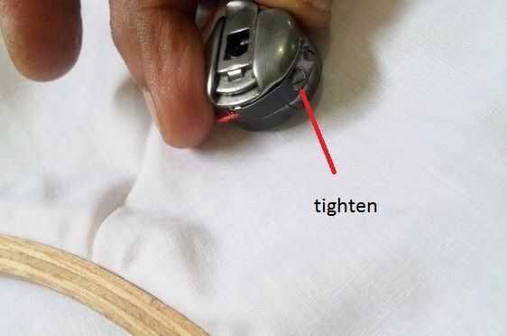 Coloque la canilla en lanzadera y tire del hilo a través de. Generalmente aquí el hilo saldrá libremente en la costura normal, pero no demasiado suelta. Ahora tienes que ajustar la tensión aquí para que tengan la misma tensión en el hilo superior costura de la forma habitual.