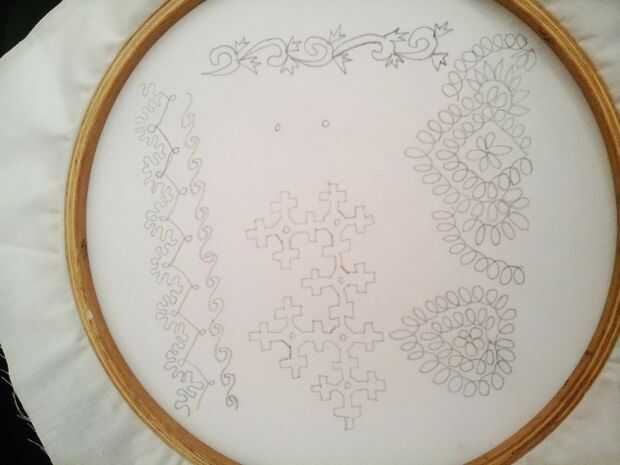 Patrón de transferencia en el lado equivocado de la tela. Puede utilizar una caja de luz para hacerlo o utilizar un carbón para la tela.