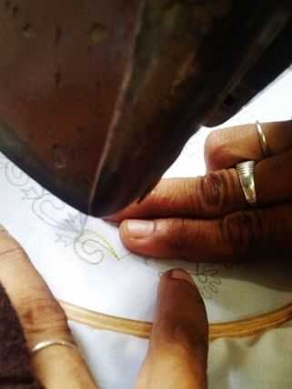 :-) Bueno, ahora todo lo que tienes que hacer es seguir su patrón. Es fácil si tienes una sigue el patrón. Si no, sólo parar, saltar a la siguiente posición y coser lejos. Recuerde que usted sería coser en el lado equivocado de la tela.