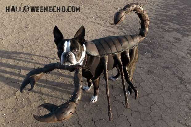 La parte superior de la porción posterior del escorpión es atada al cuello de la blusa y aseguró bajo su vientre con una correa de nylon.