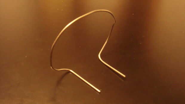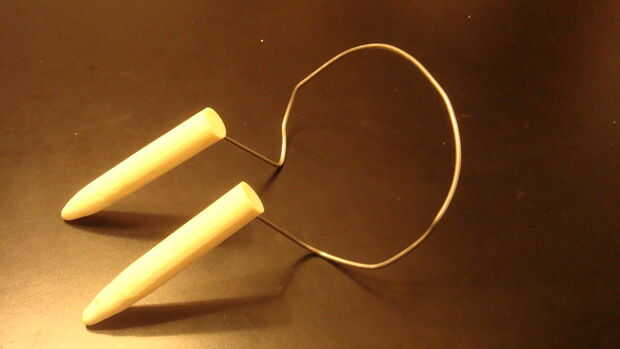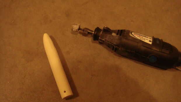 Para crear los colmillos, utilicé un bolígrafo marfil sintético en blanco para su uso en un torno de pluma. He comprado estos en las industrias de Pennstate (item # wxeea912) @ 4,95 cada envío plus. Utilicé una herramienta Dremel con un disco de papel de lija para tallar los espacios en blanco de la pluma en forma de colmillo. Quería a ver tan natural como sea posible así por tallado a mano en lugar de en un torno les dio un aspecto irregular, tal y como vería en la naturaleza. Ahora para colocar a Echo (el perro) era un poco de ensayo y error, pero la solución final fue utilizar un alambre 1/8" acero comprado en home depot. Mano moldeada esta barra en un semicírculo y doblar los extremos de 90 grados. Esto tiene los colmillos en su lugar sin atragantarse Echo (el perro). Para unir los colmillos al cable me perforó un orificio de 1/8" en cada uno de los colmillos y super había pegado en lugar.