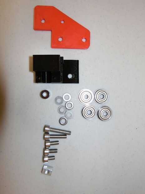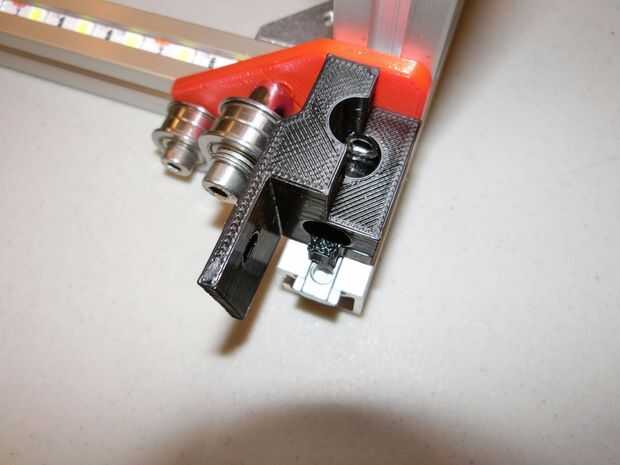 8. grab x 2 parte C2 (usado sólo para alineación) y coloque en la impresora como se muestra. Tenga en cuenta las pestañas en la parte superior de la pieza de la esquina plástica que debe mantener las protuberancias en su lugar.
