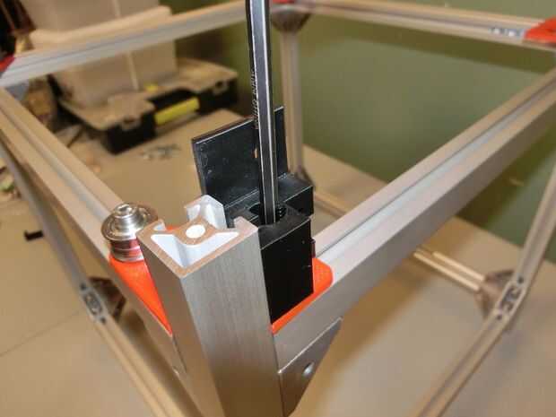 9. Afloje cualquier pernos necesarios para bajar la Plaza marco superior para quedar al ras con la parte superior de las protuberancias verticales, como se ve en la foto. Apriete todos los tornillos para fijar el marco en su lugar.