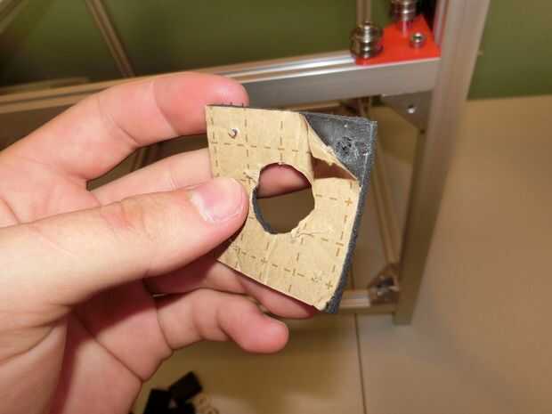 1. Pele dorso de papel de piezas del G7. Si usted compró los materiales usted mismo de Misumi, necesita cortar una pieza que se ajuste en la cara de un motor de pasos Nema 17. Esto tiene que ser exacta.